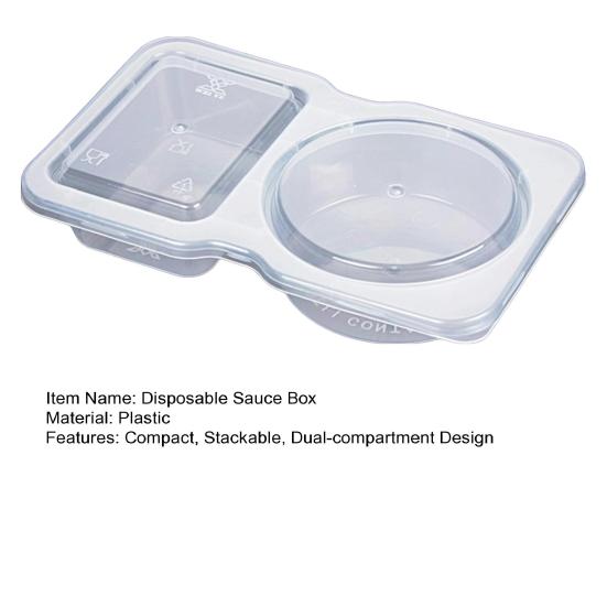 Представляем нашу герметичную одноразовую коробку для соуса, разработанную для вашего удобства и потребностей в хранении продуктов питания.. Двухслойные контейнеры оснащены герметичными крышками, что предотвращает проливание и утечку, что делает их идеальными для безопасной переноски приправ и закусок.. Сохраняйте свежесть и порядок в продуктах питания с помощью этой инновационной функции, идеально подходящей для хранения гарниров, соусов или заправок для салатов.