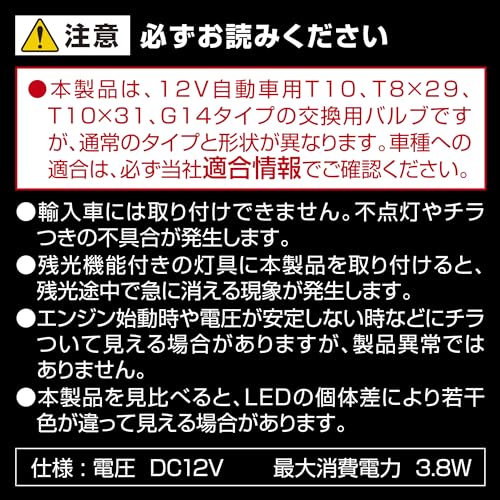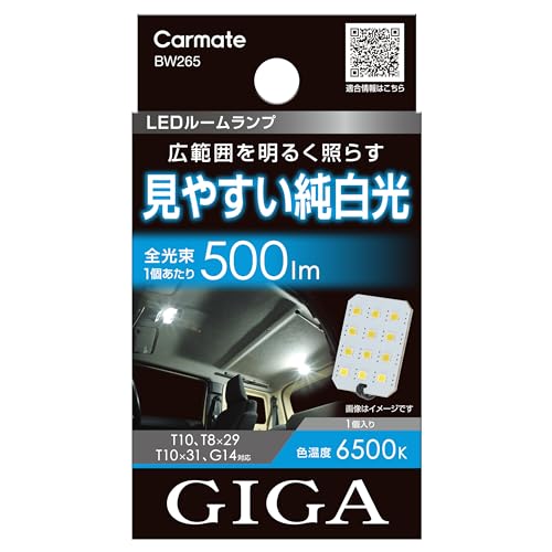 Автомобильный светодиодный светильник Carmate GIGA для салона автомобиля, совместимый с T10/T8×29/T10×31/G14 [6500K/500лм] Широкий диапазон освещения пластинчатого типа [оснащен 12 светодиодами яркости