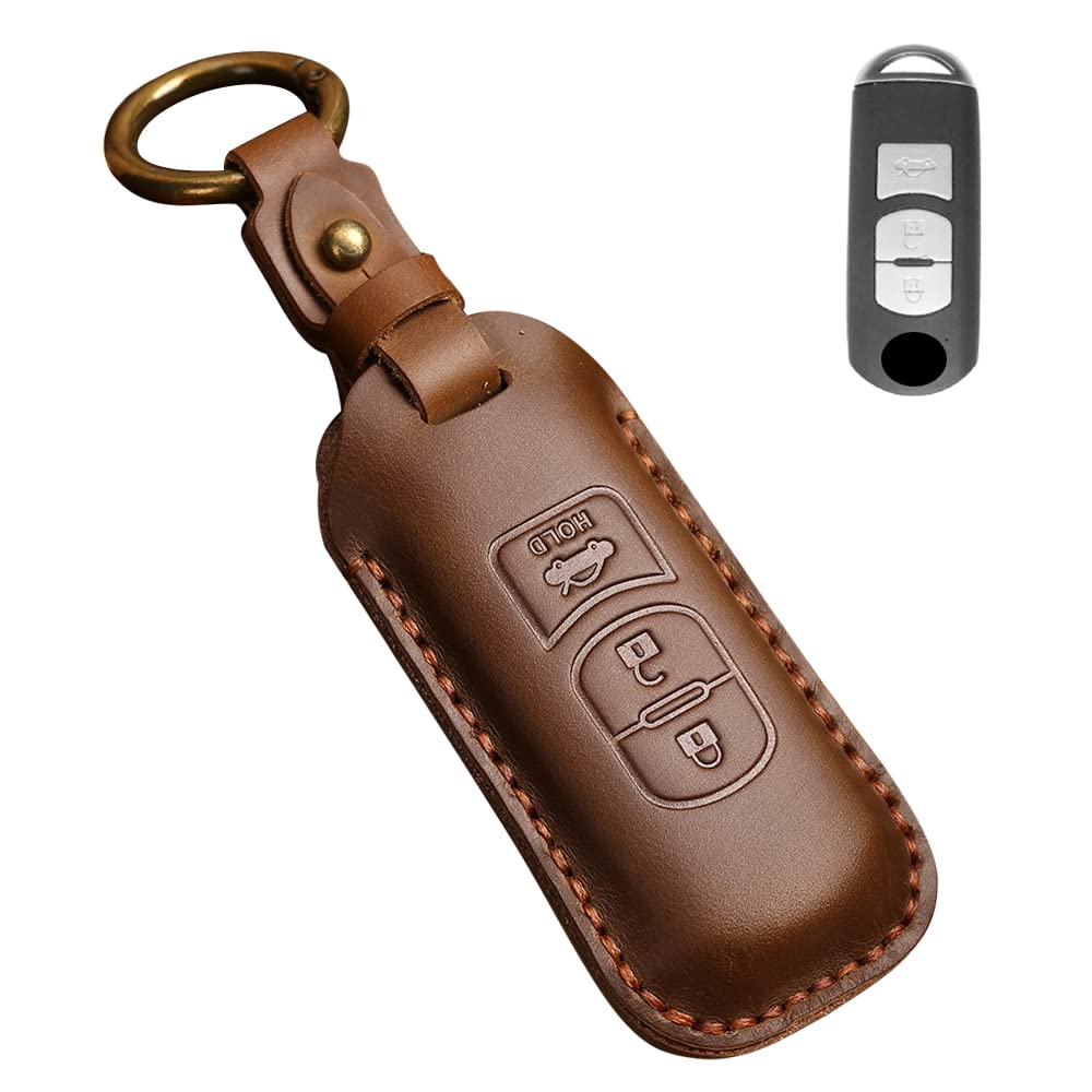 [LETINGFAR] Совместимый/сменный чехол для ключа, чехол для смарт-ключа, чехол для ключа, 3 кнопки, брелок из натуральной кожи для Mazda (коричневый)