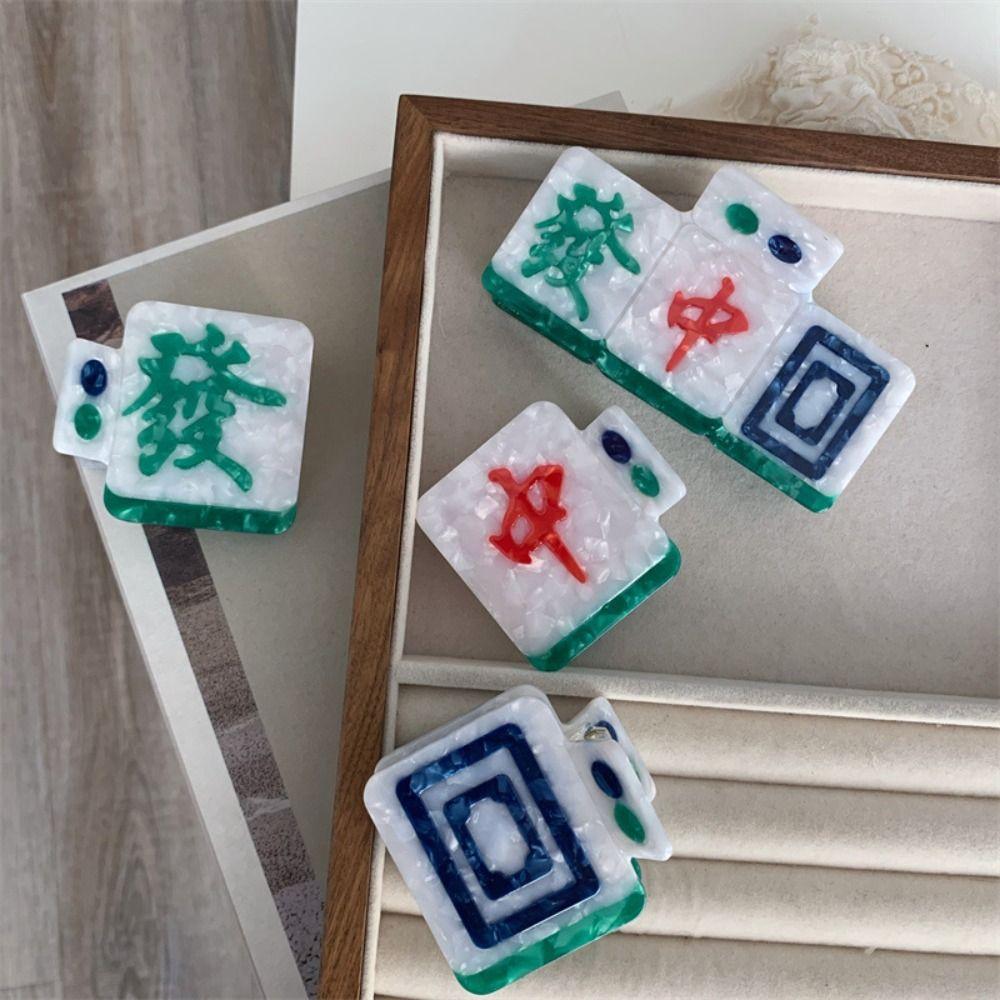 Заколка для волос из ацетата с рисунком, новая заколка для волос в китайском стиле в виде акулы, милая женская заколка для волос в виде маджонга
