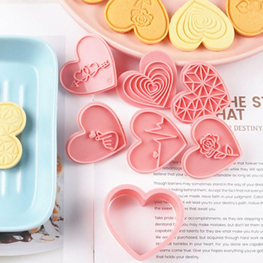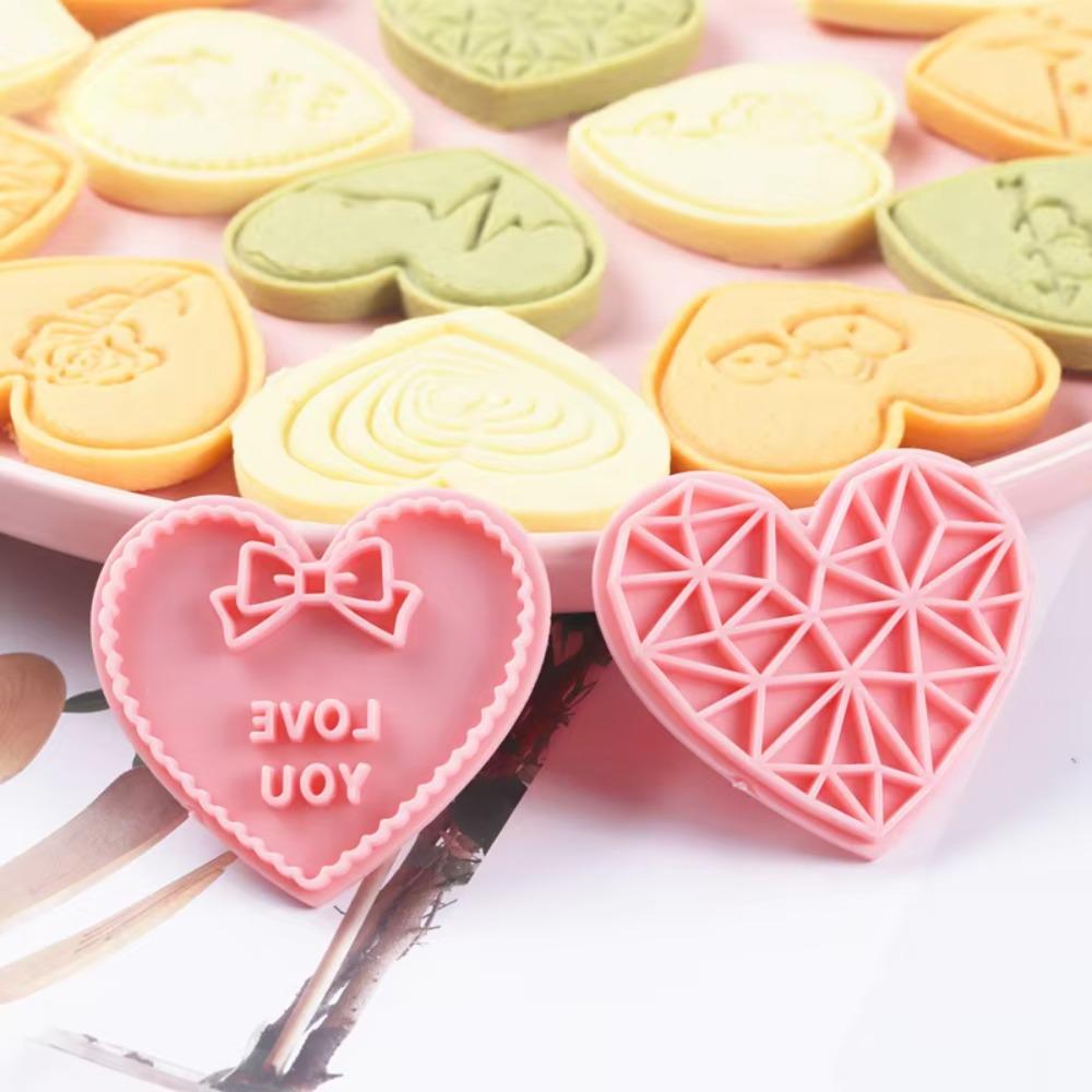 10 шт./набор формочек для печенья в форме сердца с розовым принтом для тиснения печенья, форма для выпечки печенья Home
