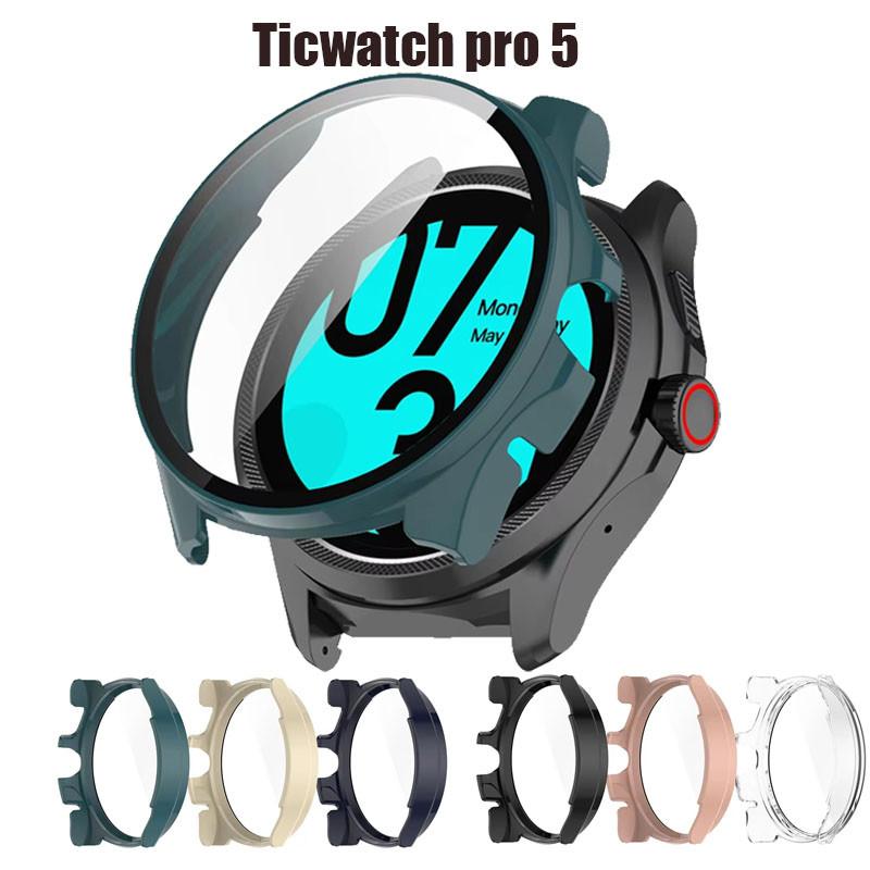 Glass Case for Ticwatch Pro 5 Hard PC Shell Full Cover Screen Protector Smart Watch Protective Bumper cases Tic Watch Pro5
