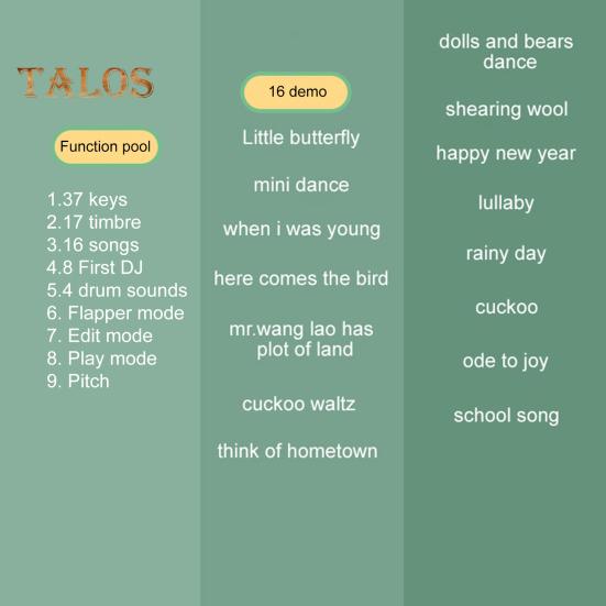 Благодаря разнообразию звуков, включая 17 тонов, 4 ритма барабанов и 3 режима игры, дети могут исследовать различные звуковые комбинации и раскрывать свой творческий потенциал.. Многофункциональность позволяет записывать и воспроизводить, способствуя развитию мозга и обеспечивая бесконечное количество развлечений.