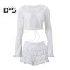 Женский сексуальный комплект из двух мини-юбок с низкой талией, многоуровневая юбка с оборками, короткий расклешенный топ с длинными рукавами и завязками, комплект для вечеринки и клуба
