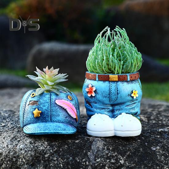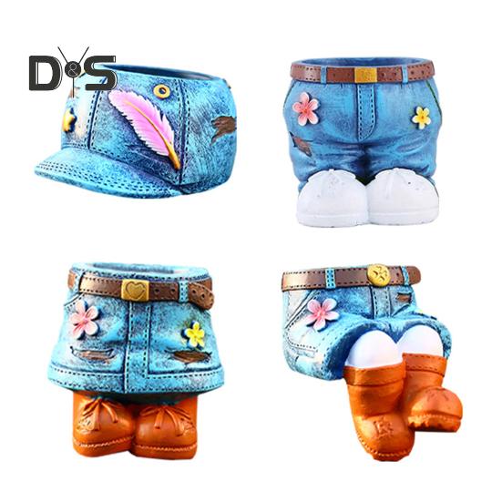 Джинсовый цветочный горшок из смолы, ретро-юбка из денима, цветочный горшок, домашний декор, суккуленты, кашпо для сада, двора, внутреннего стола, дисплей