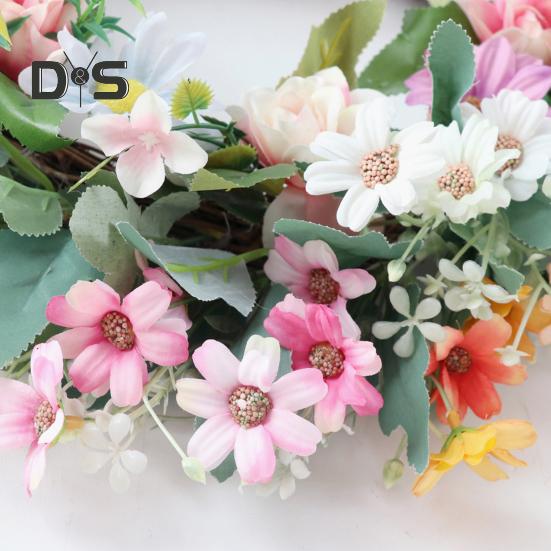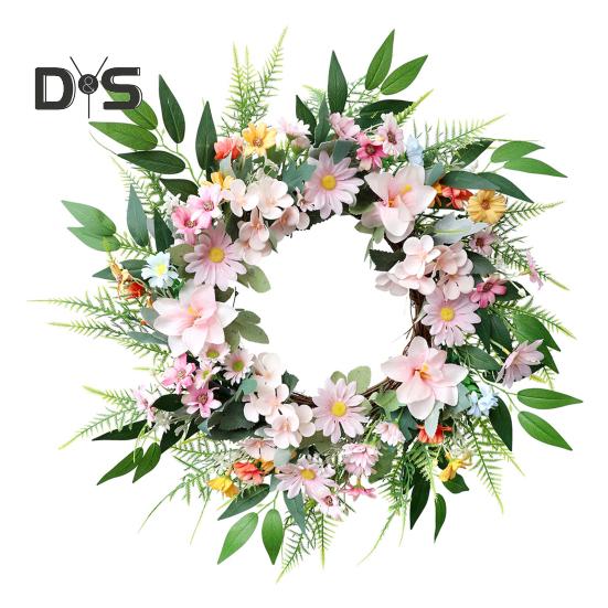 Этот венок из искусственных цветов не требует ухода, экономит ваше время и силы, сохраняя свою красоту круглый год.. Универсальный и легко адаптируемый, он может украсить любое пространство, будь то входная дверь, стена, окно, ферма, цветочный магазин или место проведения свадьбы.. Почувствуйте красоту весны с этим очаровательным цветочным украшением.