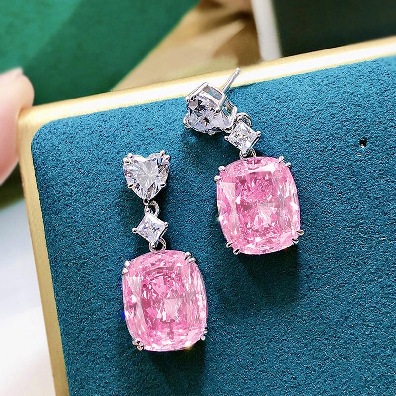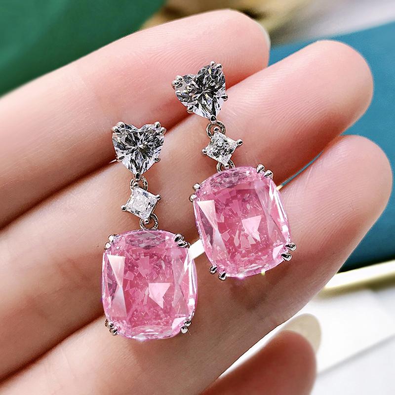 Huitan Sweet Женские роскошные серьги-подвески с ярко-розовыми фианитами, модные великолепные украшения для свадебной вечеринки, свадебные аксессуары