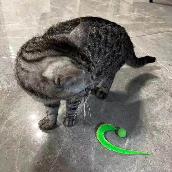 Интерактивный прыгучий мяч с хвостом, разноцветный пушистый червяк, прыгучий мяч для кошек, игрушка для преследования кошек в помещении в виде радужного червяка