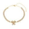 Женский браслет на щиколотку, двухслойный, блестящий, со стразами, регулируемая длина, украшение на щиколотку в виде бабочки, ювелирное изделие для вечеринки, пляжа, ежедневного подарка на день рождения