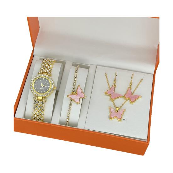 Дополните свой стиль этим изысканным комплектом ювелирных украшений с часами Precision Chronograph с кварцевым механизмом для точного измерения времени.. Роскошный дизайн, наполненный стразами, излучает элегантность, дополненную сверкающими стразами, которые добавляют очаровательный штрих, делая вас центром внимания на любом мероприятии.. Эта полная коллекция ювелирных изделий включает в себя часы, браслеты, ожерелья, серьги и кольца, предлагая универсальные варианты стилизации, подходящие для любого случая..