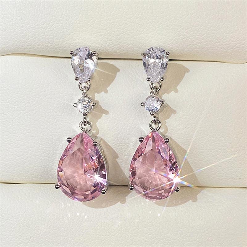 Серьги-подвески Huitan Temperament Sweet Pink Pear Circonia для женщин, для помолвки, изысканные аксессуары для ушей, модные ювелирные изделия