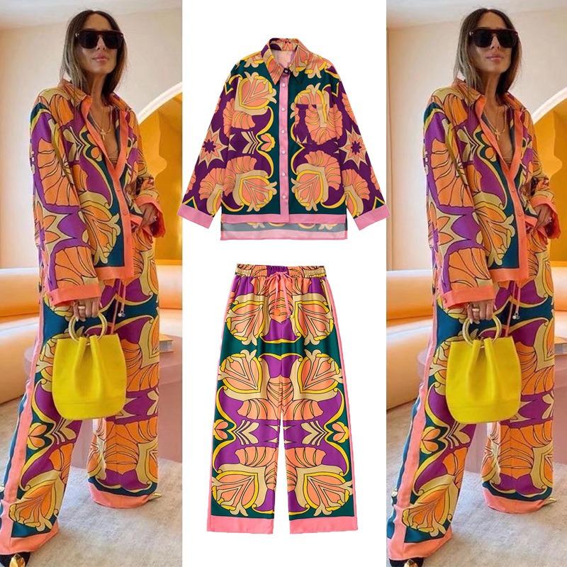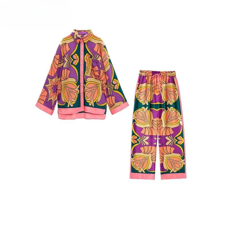 Женская весенняя новая освежающая свободная рубашка с длинным рукавом и длинными брюками