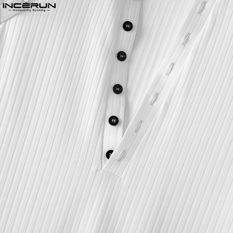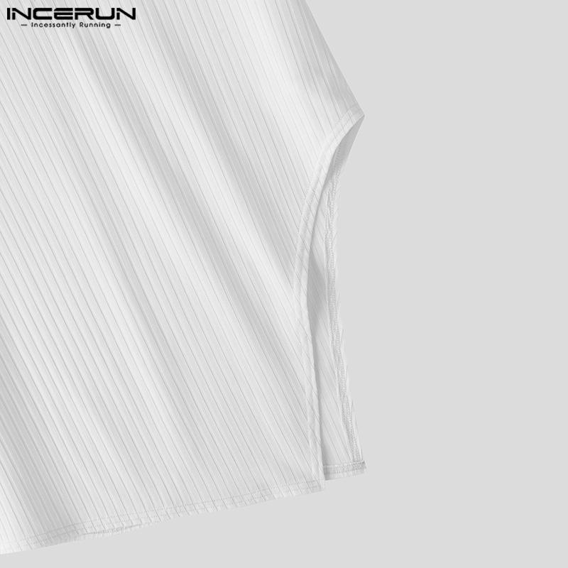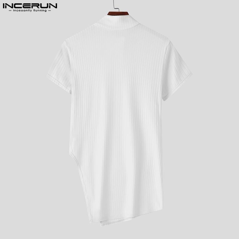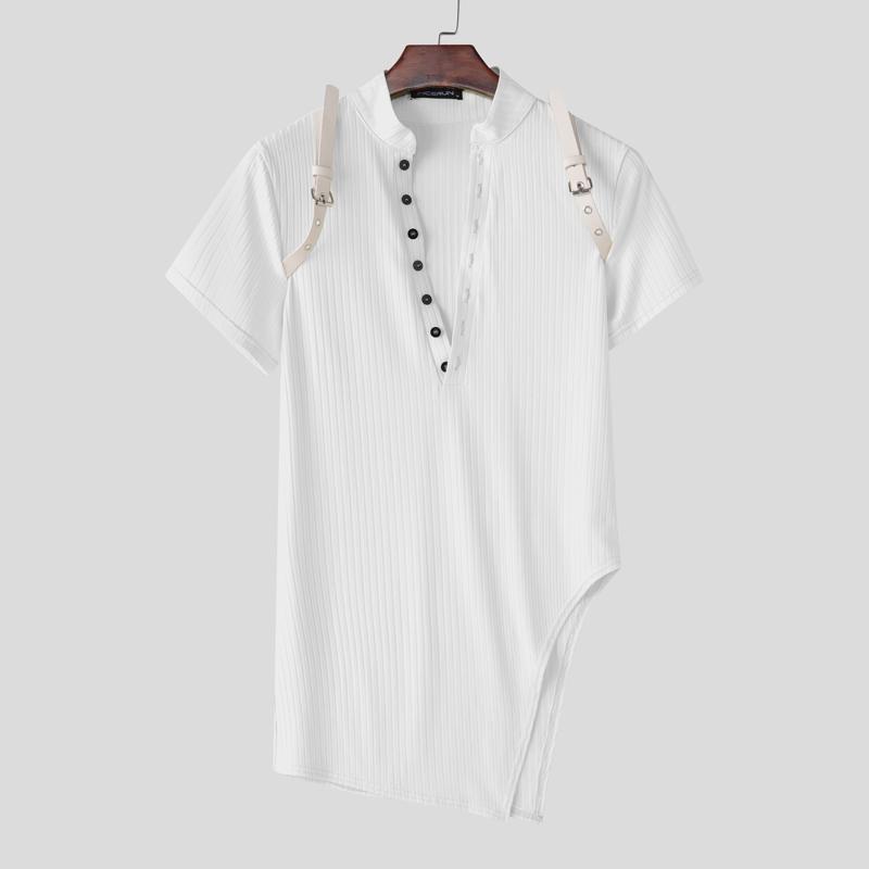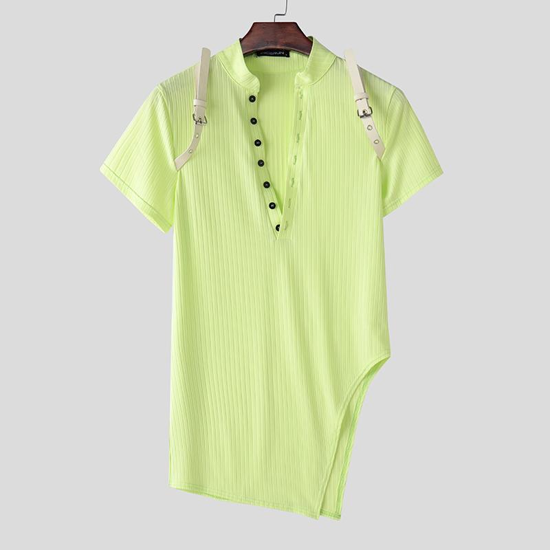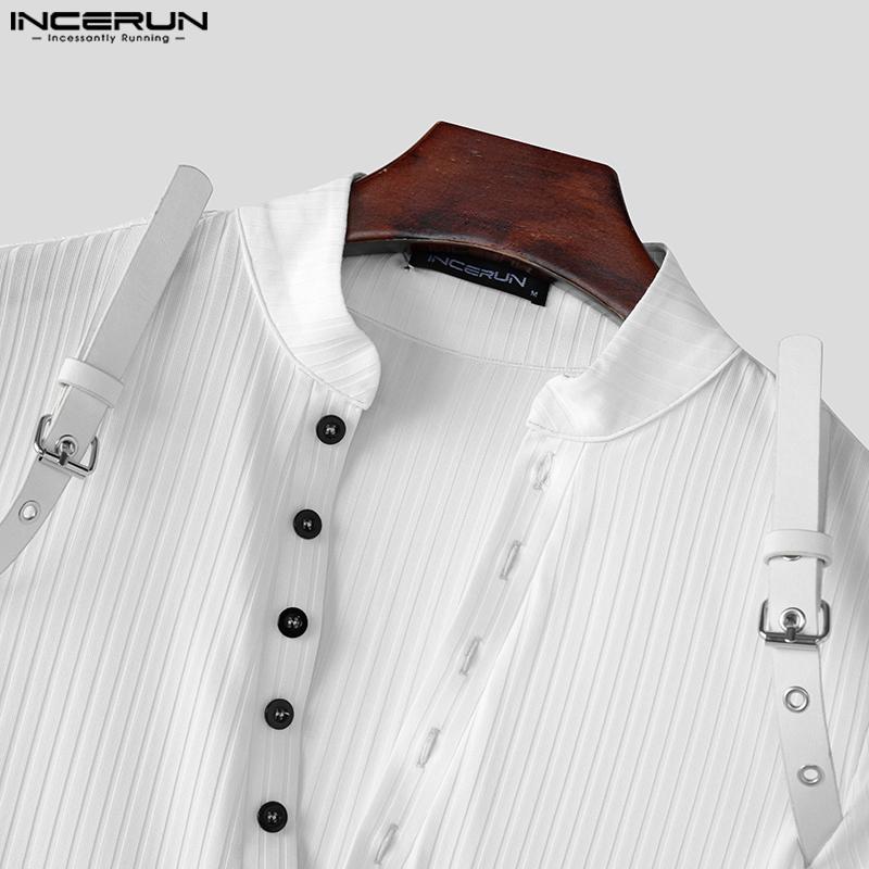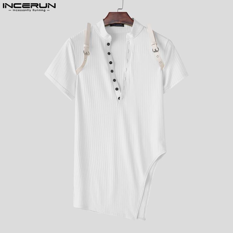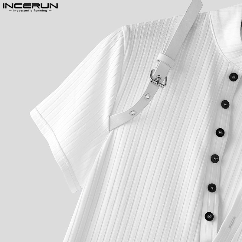 INCERUN Мужские футболки с коротким рукавом, на пуговицах, на ремне, в стиле пэчворк, повседневные, приталенные, нестандартные, топы