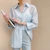 Летняя рубашка с солнцезащитным кремом, длинный рукав, дышащий топ из ледяного шелка, женская свободная рубашка, тонкая