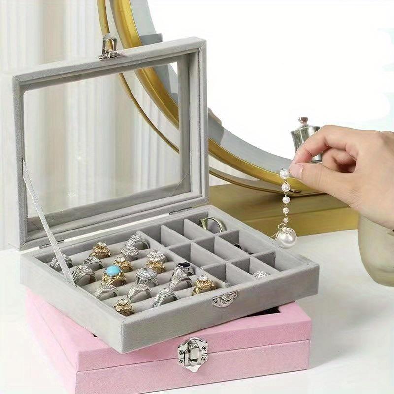 20*15*5 см 1 шт. Пылезащитная бархатная коробка с откидной крышкой для хранения ювелирных изделий, большая вместимость, прозрачный дисплей, портативная коробка для сережек, колец, ожерелий.
