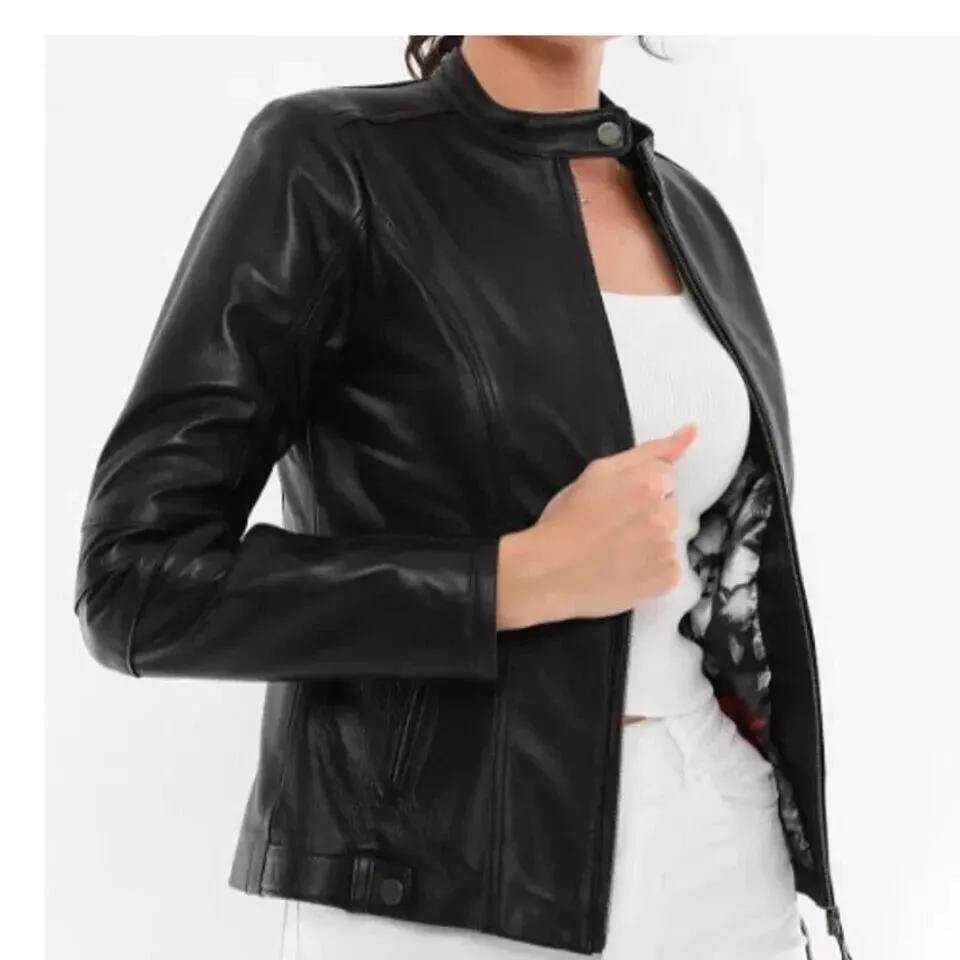 Женская куртка черного цвета ручной работы из натуральной овчины, байкерская, мотоциклетная, стильная