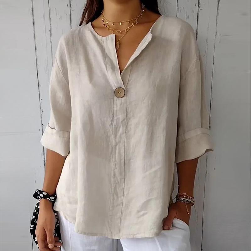 Новые летние топы, свободные повседневные рубашки с V-образным вырезом, женские хлопковые и льняные блузки с рукавом семь четвертей, женские элегантные узкие рубашки-пуловеры 26456 — купить товар онлайн с бесплатной доставкой по всему миру!