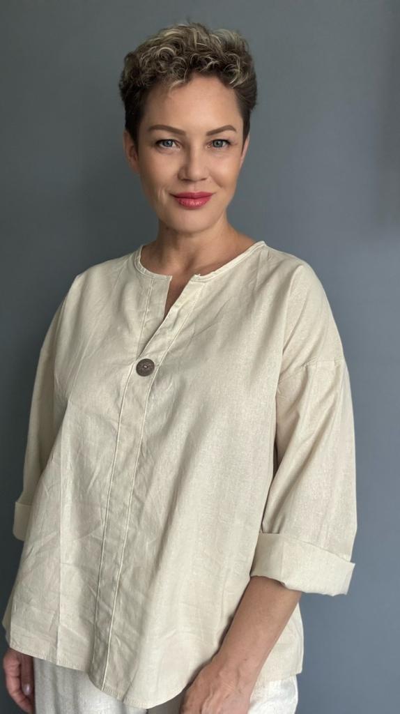 Базовая блуза цвета льна ✔️Шесть цветов на выбор, у меня абрикосовый Размеры S-5XL Мои параметры: 167, 98-85-100 На мне размер 3XL Блуза села свободно ✔️Силуэт: Прямой К низу чуть шире Выточек нет Рукава широкие Плечи спущенные Вырез V-образный От горловины, вниз, идет планка, украшенная крупной пуговицей в винтажном стиле ✔️Ткань: Натуральная Не думаю, что это лен, скорее, хлопок Материал плотный, тонкий, не тянется, немного просвечивает , мнется ✔️Впечатления: Я люблю такую простую одежду, минимализм. И вообще, одежда цвета необработанного льна, мой фаворит на лето Украсить аксессуарами, и будет супер Пошив фабричный 📐Замеры: Плечи 65 Длина рукава от горловины 63 Длина рукава 41 Пройма 21 ОГ подмышками 124 ОТ 124 ОБ 134 Длина 65