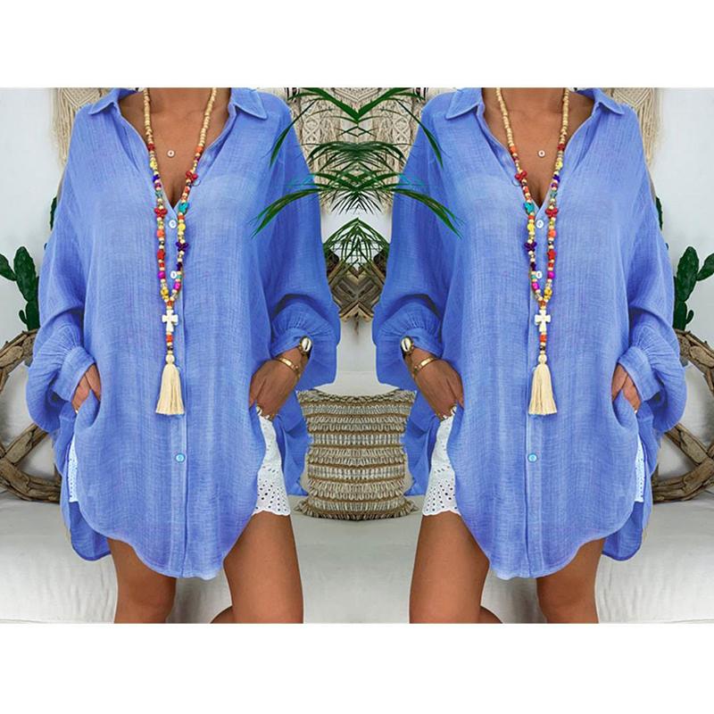 Летние новые хлопковые и льняные рубашки больших размеров для женщин, свободные, на пуговицах, с длинным рукавом, повседневные женские блузки, женские топы, простые офисные рубашки с лацканами для женщин 26457