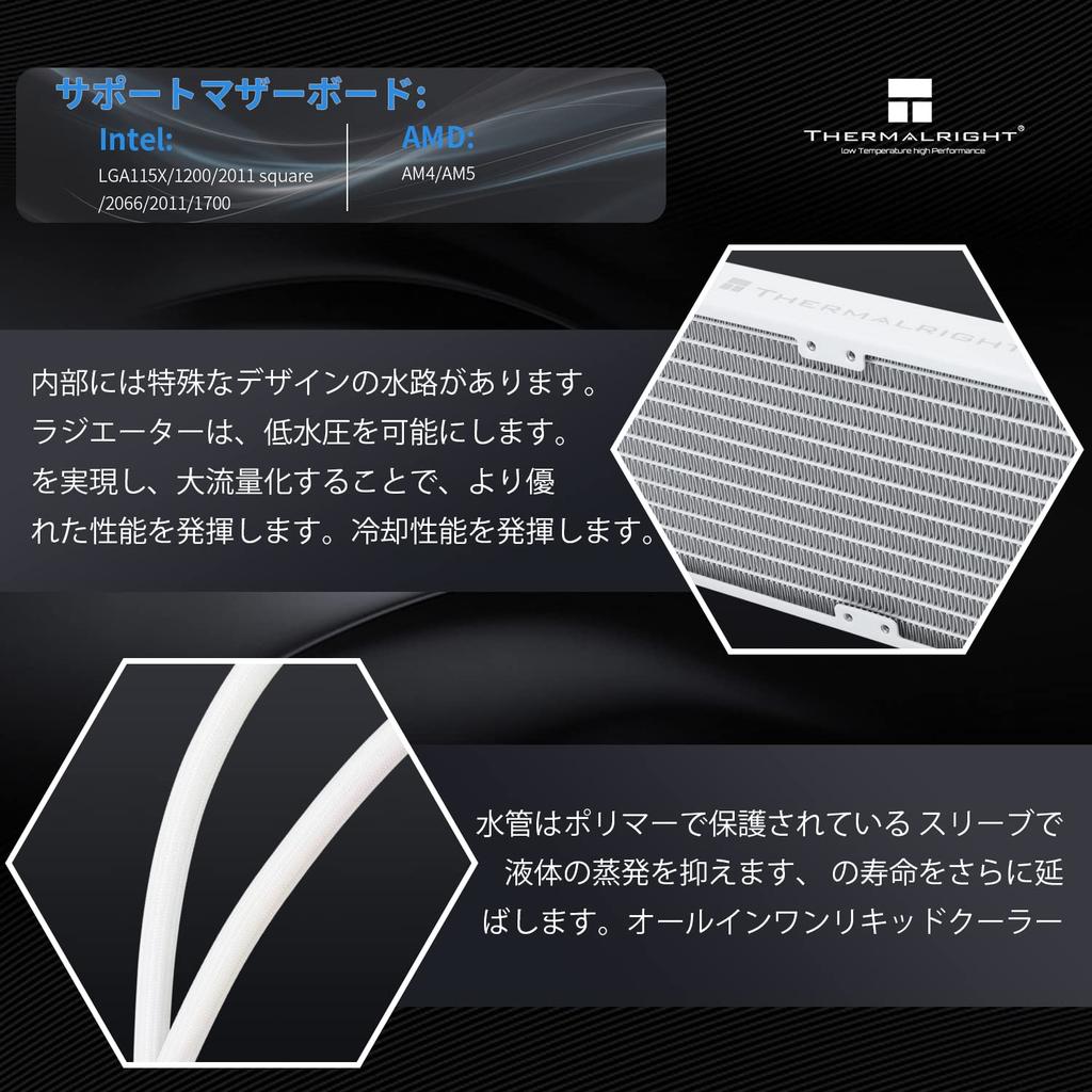 Высокая совместимость] Совместимость с AMD для водяного охлаждения Thermalright: AM4/AM5, Интел. 1150/1151/1155/1156/1200/2011/2011-V3/2066/1700, каждая платформа имеет соответствующее монтажное крепление, процедура установки проста и может быть успешно установлена на соответствующей платформе ЦП, мы рекомендуем вам выполнить установку в соответствии с видеоуроком по установке.
