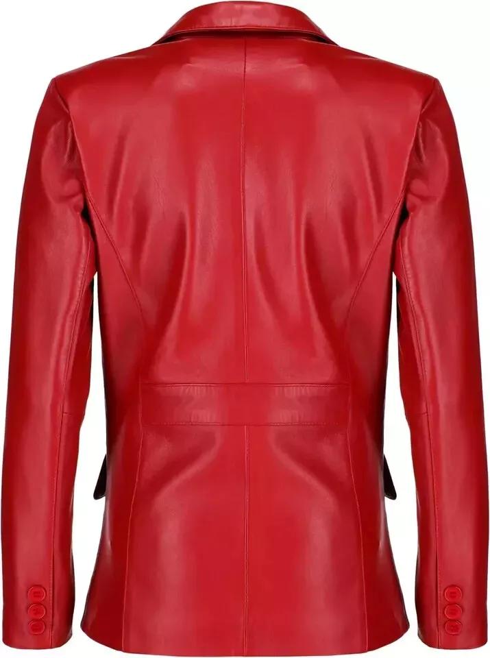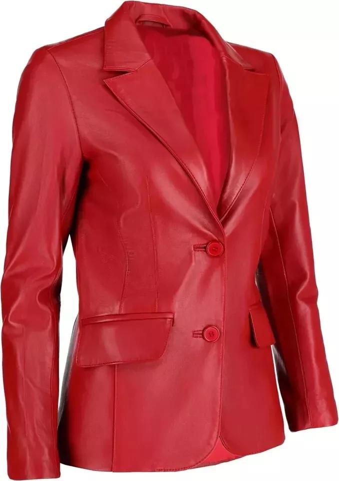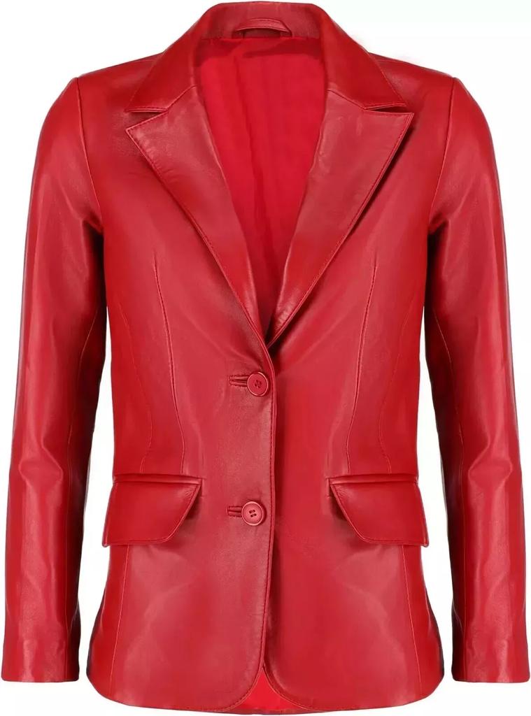 Наппа Кожа Ручная работа Классический Стильный Женский Блейзер Красный На две пуговицы Натуральная