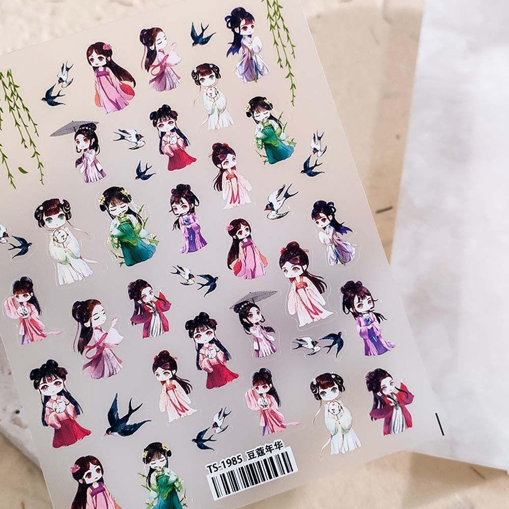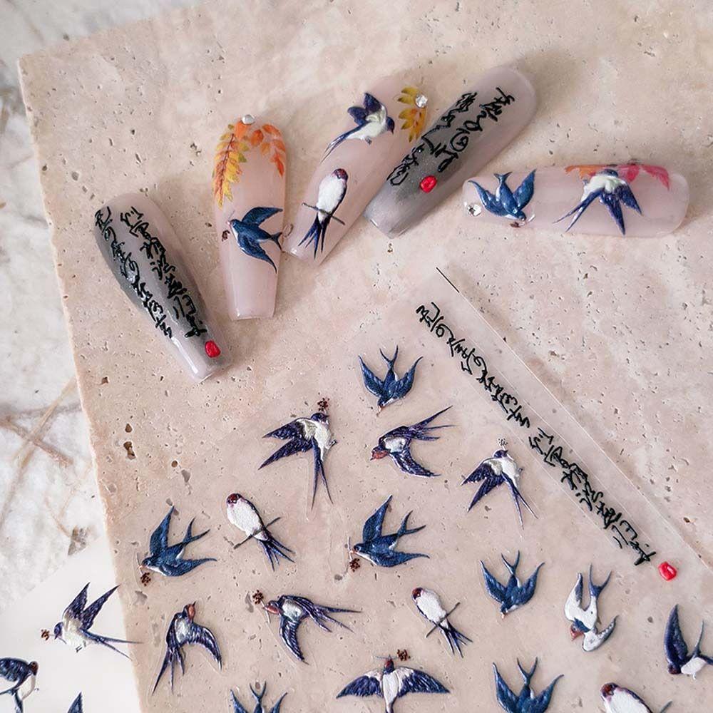 Китайские наклейки для ногтей в античном стиле, цветочные наклейки для ногтей, наклейки для ногтей в виде журавлика, украшения для ногтей