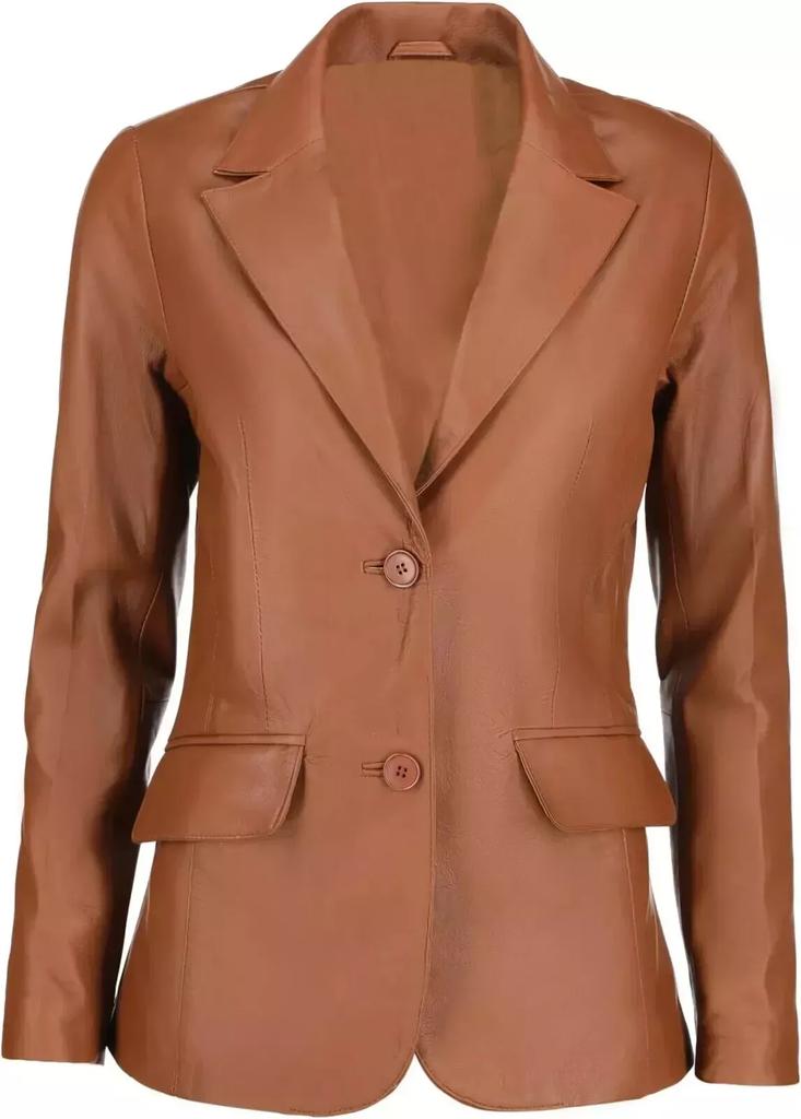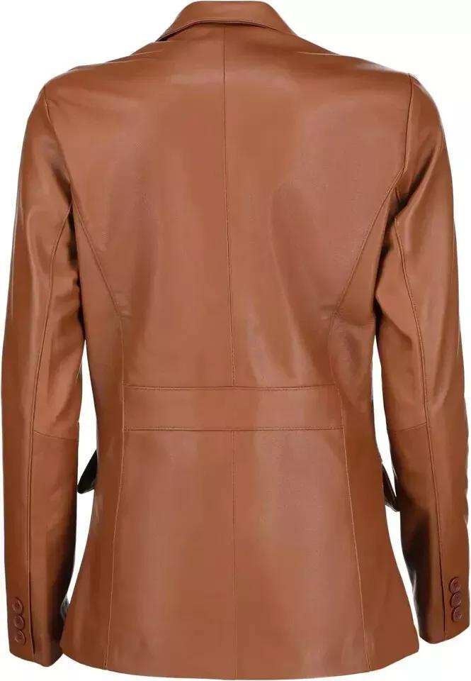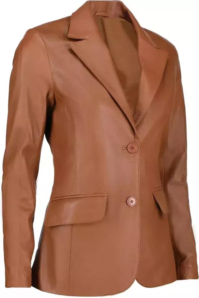 Классический стильный женский блейзер ручной работы, рыжий, на двух пуговицах, из натуральной кожи ягненка