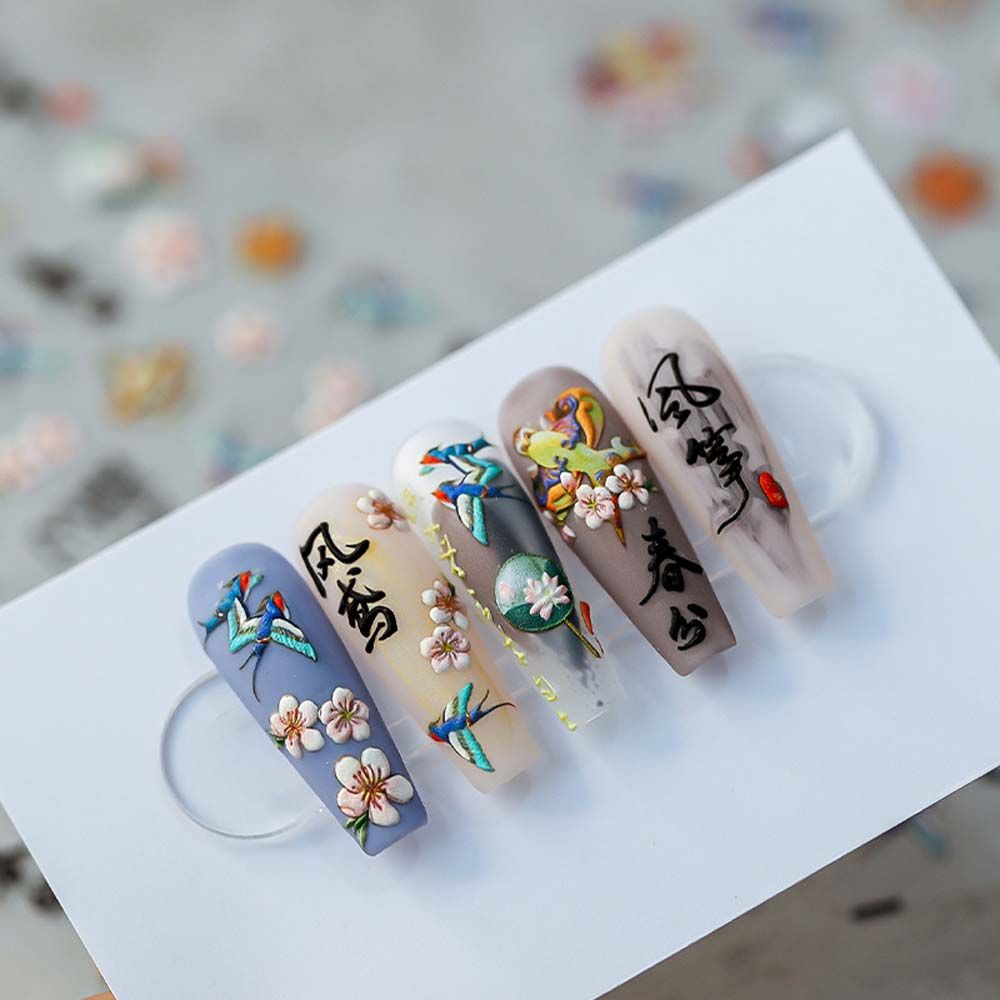 Наклейки для ногтей в античном стиле с иероглифами, китайские наклейки для ногтей, цветочные наклейки для ногтей, украшения для ногтей