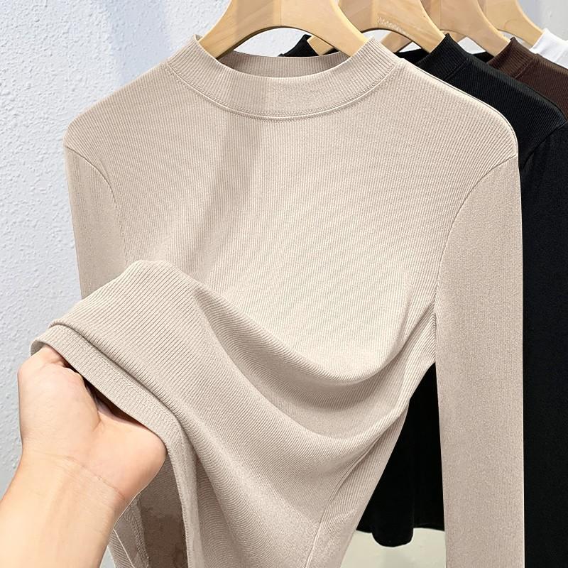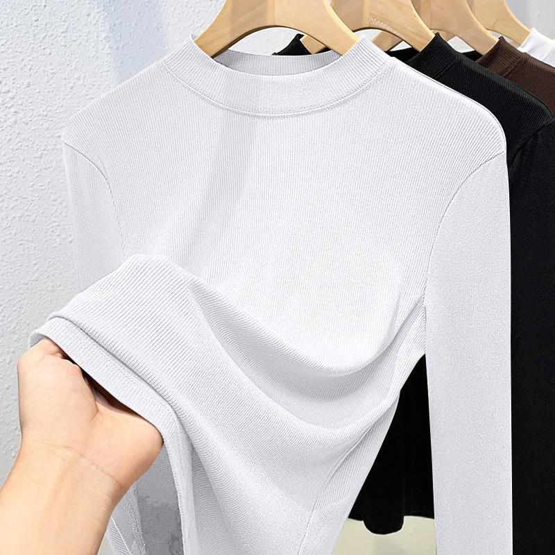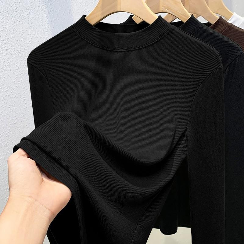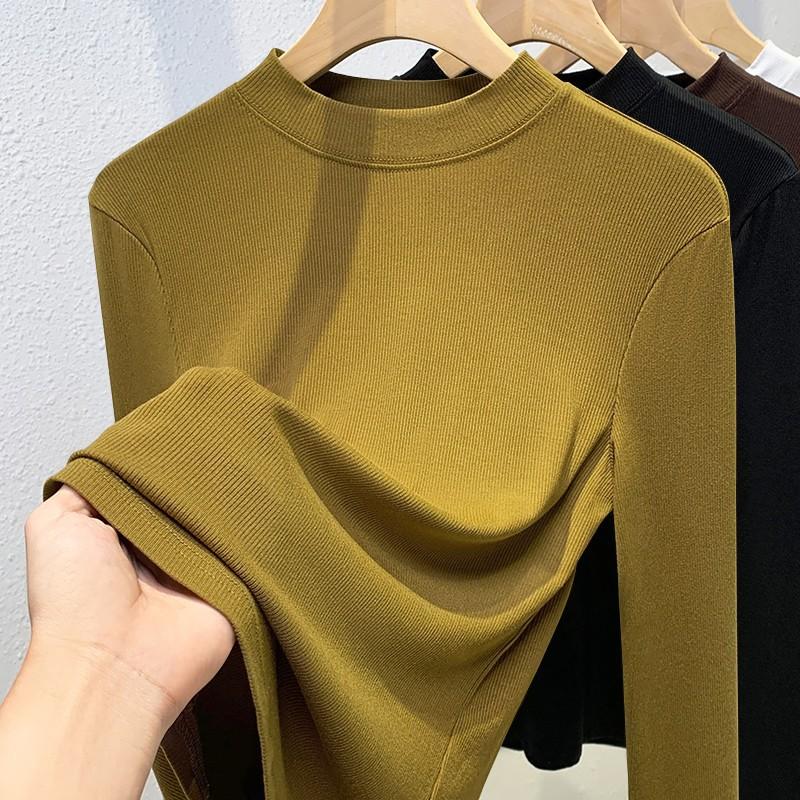 Модальная базовая футболка женская с полувысоким воротником и длинным рукавом