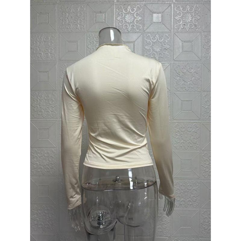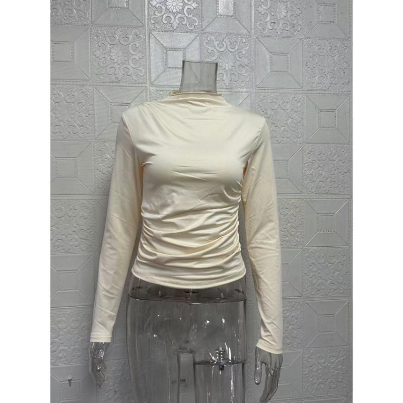 Однотонный женский топ с круглым вырезом и длинными рукавами