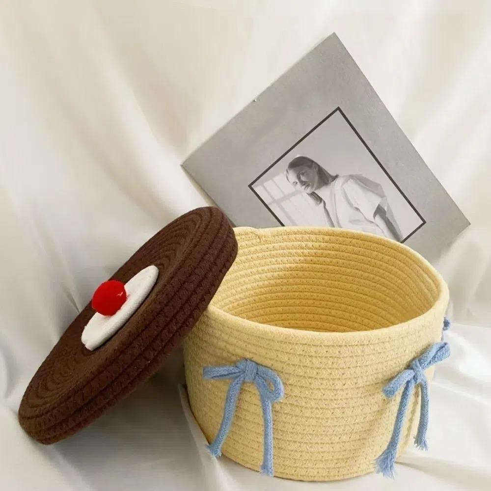 Woven Miscellaneous Basket Cartoon Coffee Table Box Cute Bow Storage Box Desktop Storages