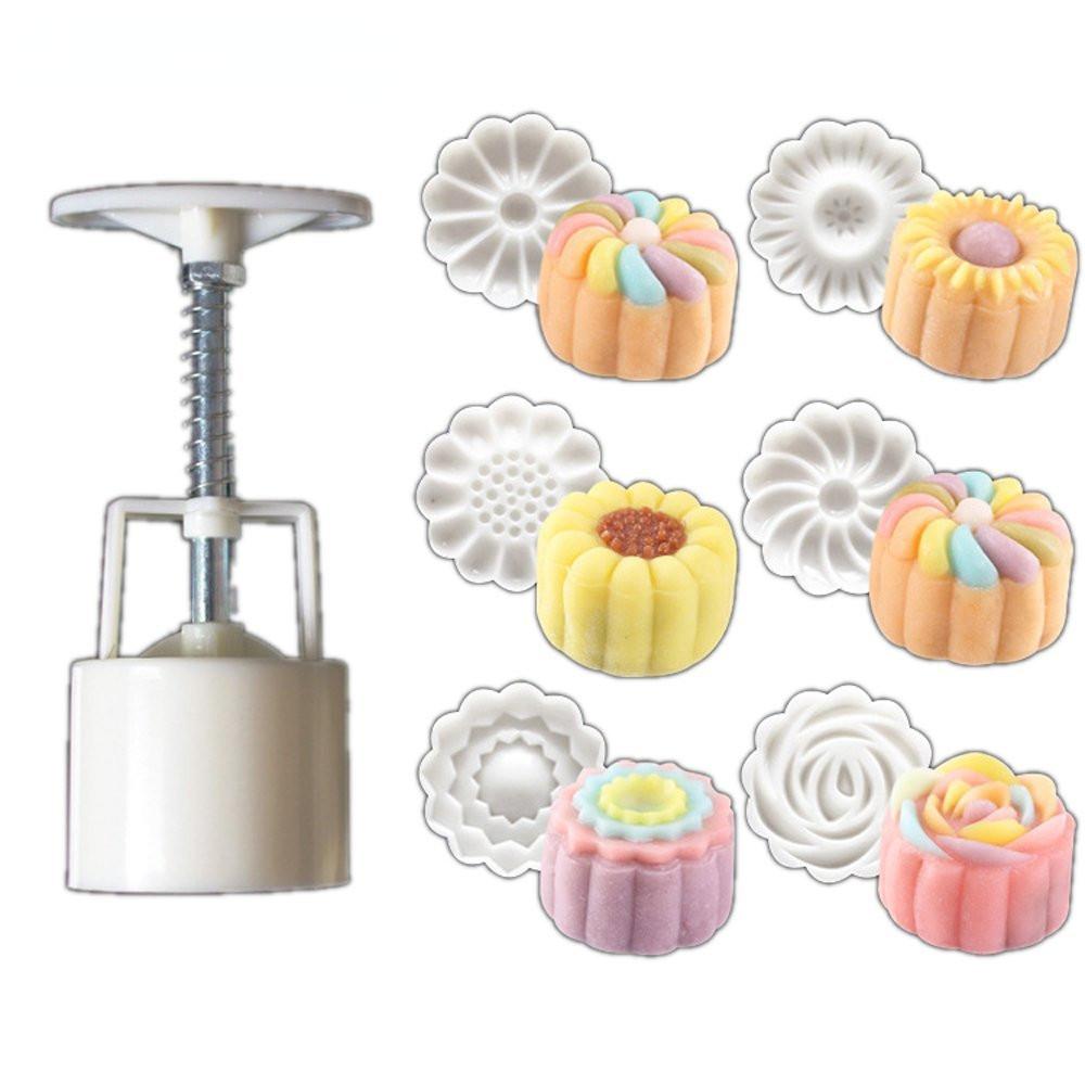 Пластиковая форма для конфет с цветком и 6 штампами, декоративная форма для лунного торта, 50 г, форма для лунного торта своими руками