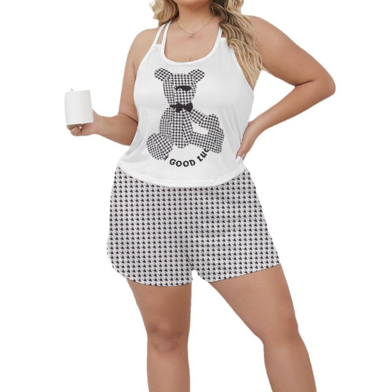 Женский комплект с шортами на шее, пижама, летняя новая принтованная спортивная одежда в стиле «Домашняя одежда»