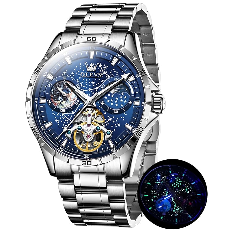 Часы OLEVS мужские механические с автоматическим заводом, циферблат со звездным небом, нержавеющая сталь, водонепроницаемые часы для мужчин, синие… — купить товар онлайн с бесплатной доставкой до всему миру!