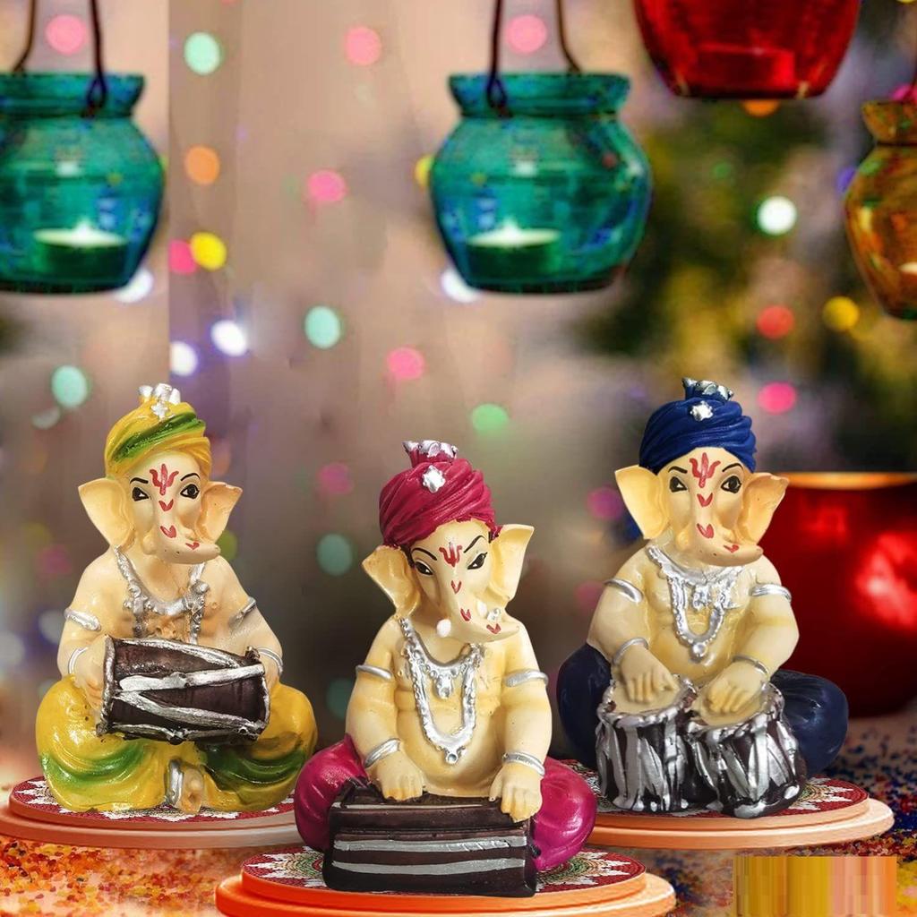 Музыкальные статуэтки Ганеши 3 для домашнего декора - (Многоцветный, Упаковка из 3 шт.)