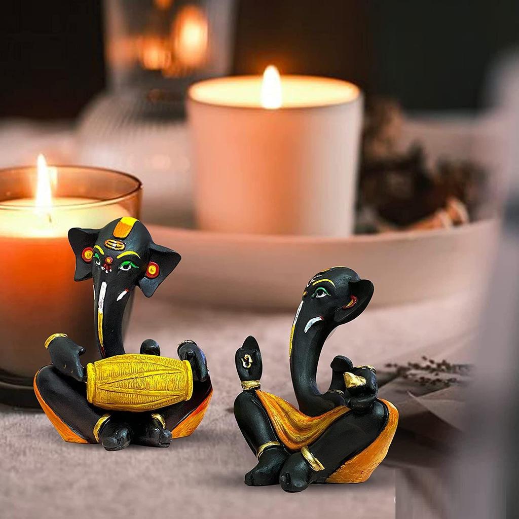 Плавающие статуэтки Ганеши из смолы, декоративные экспонаты | Распространяет позитивные вибрации (Упаковка из 2 шт., черный и желтый)