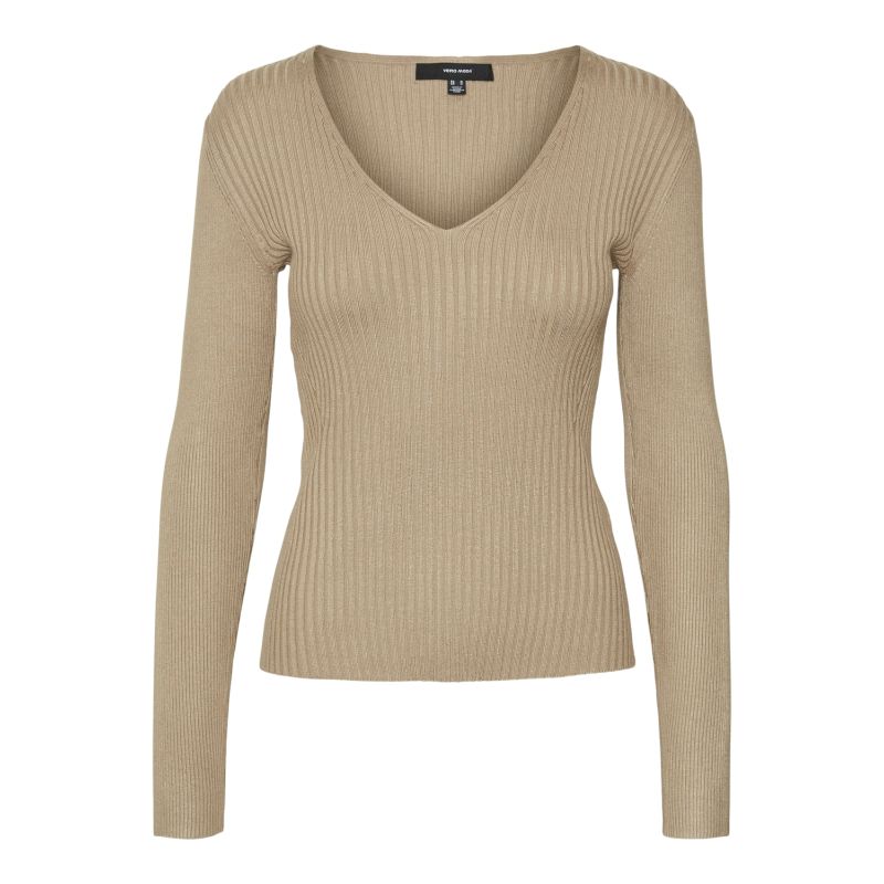 Женский облегающий пуловер Autumn в рубчик с V-образным вырезом VERO MODA