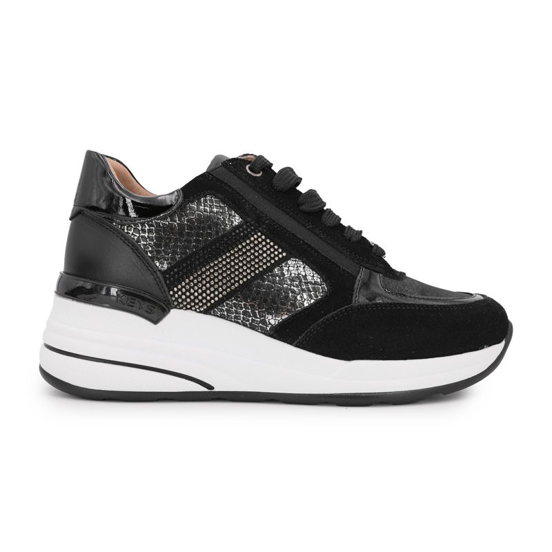 Премиальные кроссовки на танкетке с крокодиловым узором и полоской из стразов Женские KEYS