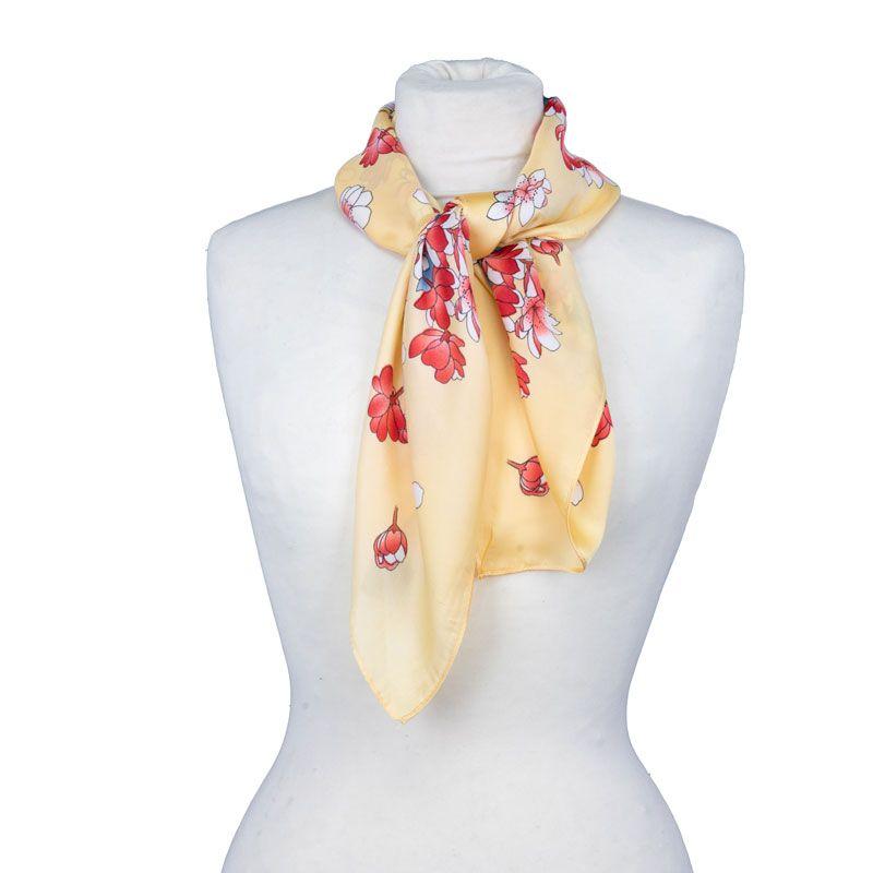 Светло-желтый шелковистый квадрат с белыми цветами 70x70 см Женский TORRENTE — купить товар онлайн с бесплатной доставкой до всему миру!