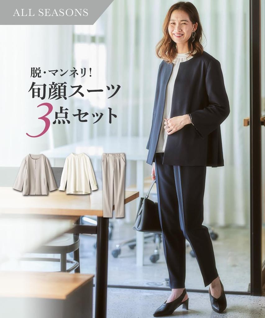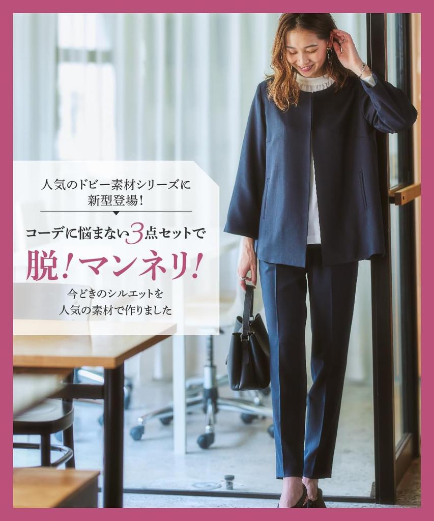 Это удобный и экономичный комплект, который можно носить как с тремя предметами одежды, так и по отдельности! [Комплект из 3 предметов]・Куртка・Блузка・Зауженные брюки