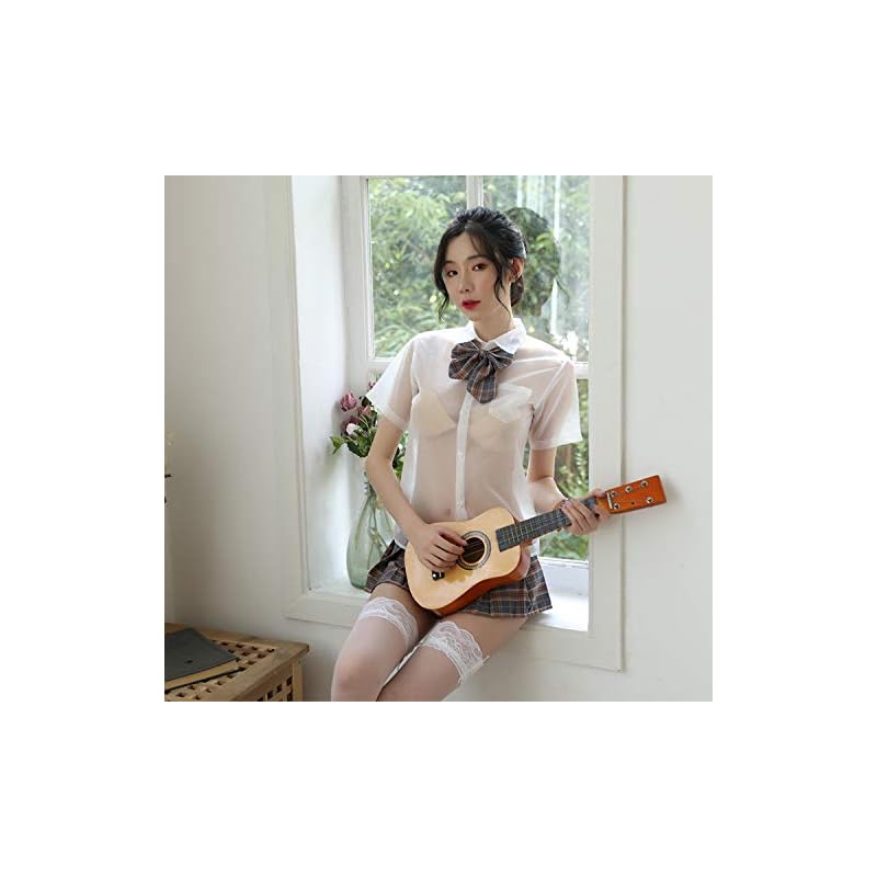 [Yomuasf] sexy lingerie pleated skirt sailor suit JK skirt cosplay See-through ribbon plaid pattern skirt short sleeve sexy underwear cute Popularity