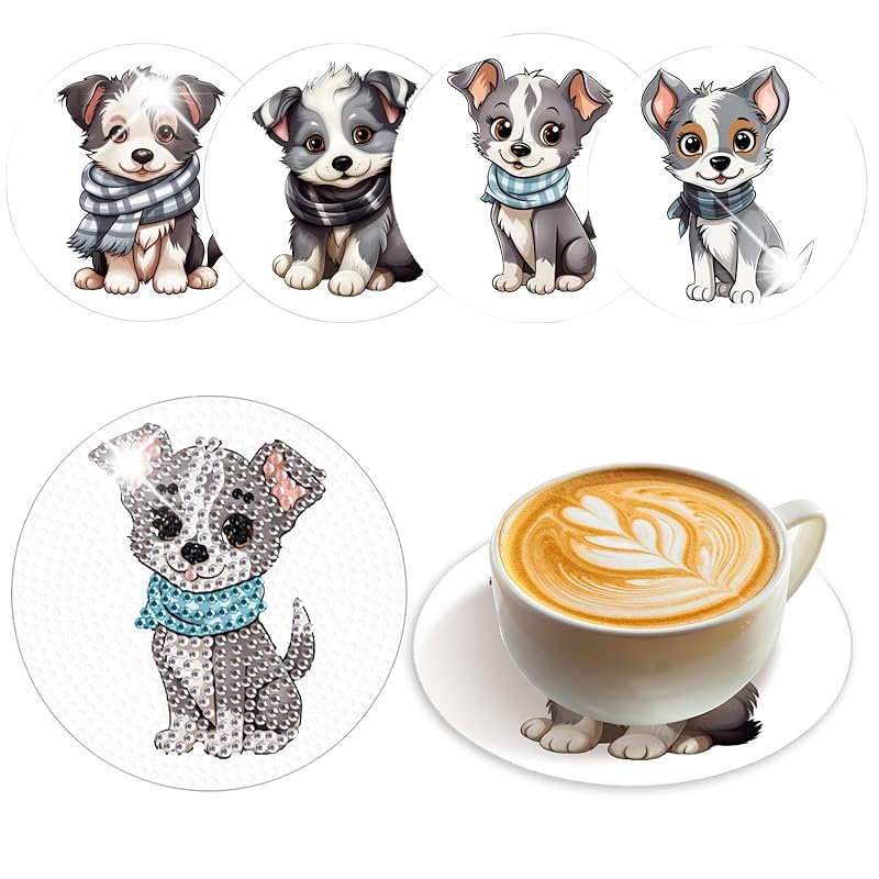 [Набор подставок с алмазной вышивкой] Подставка с алмазной вышивкой «Собака» * 4 шт., клей * 1 шт., лоток для бусин * 1 шт., алмазная ручка * 1 шт., разноцветные бриллианты (Чтобы избежать нехватки алмазных бусин, количество бусин было увеличено на 20%).Все типы и количество инструментов доступны для улучшения ручного труда.