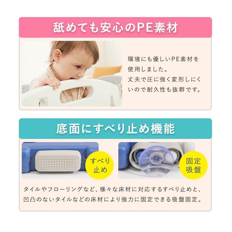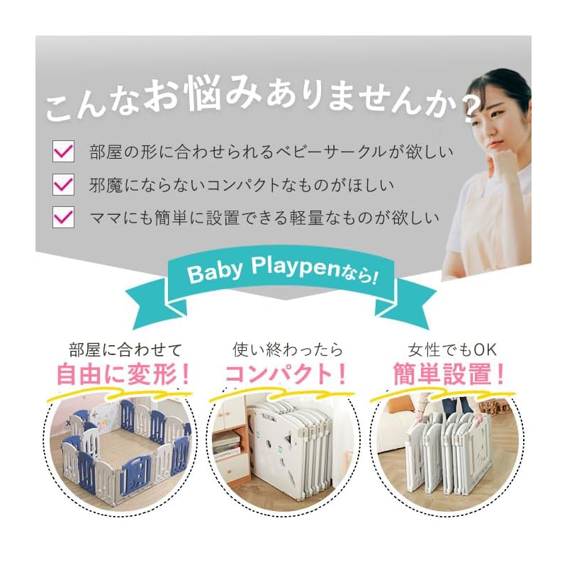 [Безопасная конструкция] Высокий тип (62см) детям сложно перелезть через него, а конструкция без углов делает его безопасным, даже если вы на него натолкнетесь. Дверь оснащена замком, чтобы дети не могли ее легко открыть.. Он безопасен, даже если ваш ребенок его лизнет, поскольку изготовлен из полиэтилена.