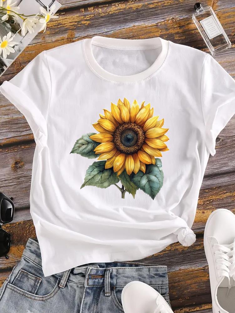 (Азиатский размер) Одежда сладкие акварельные цветочные тенденции мода принт женская повседневная верхняя женская футболка с коротким рукавом футболка с рисунком футболки