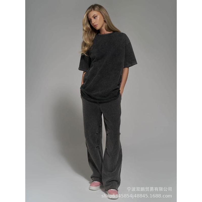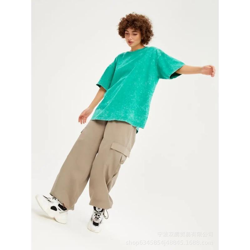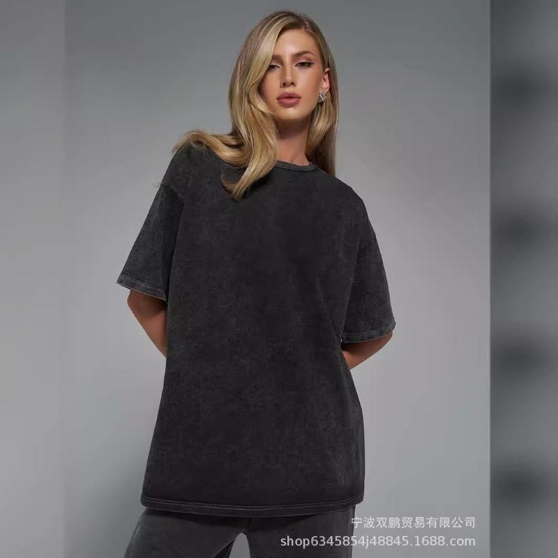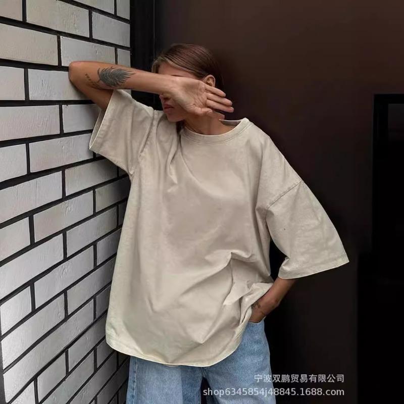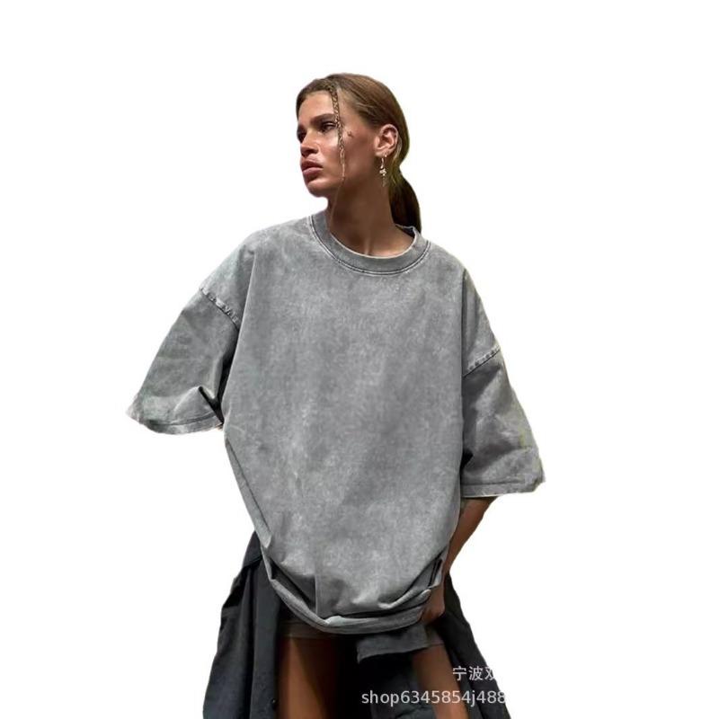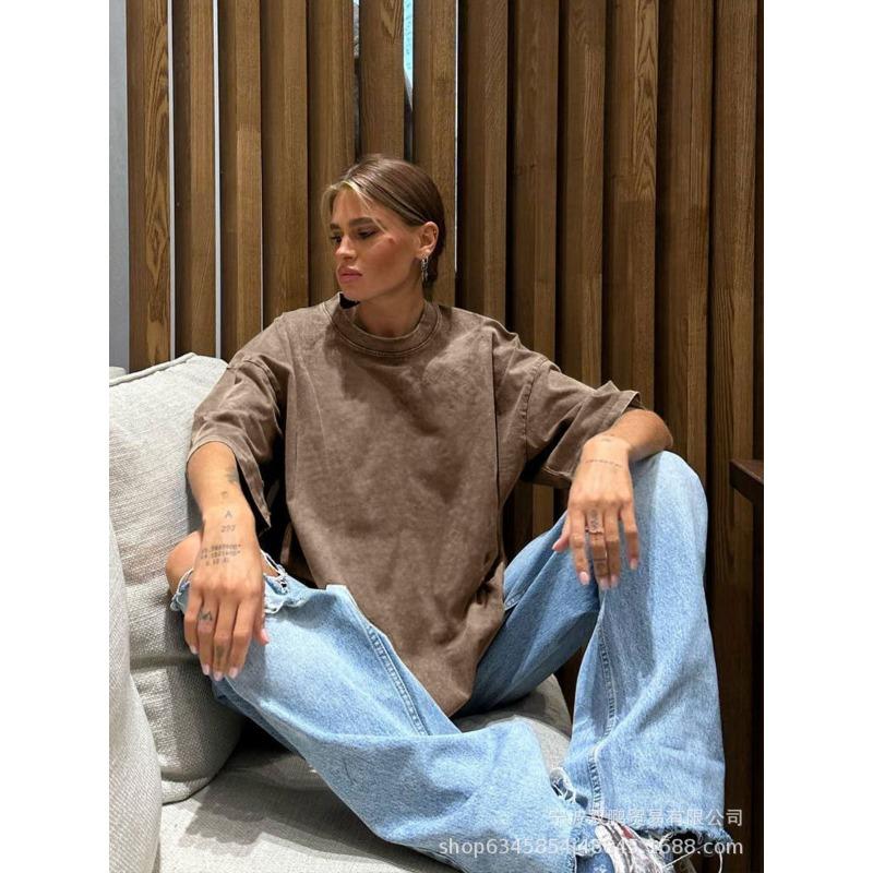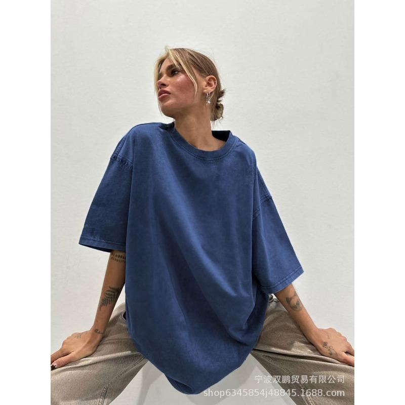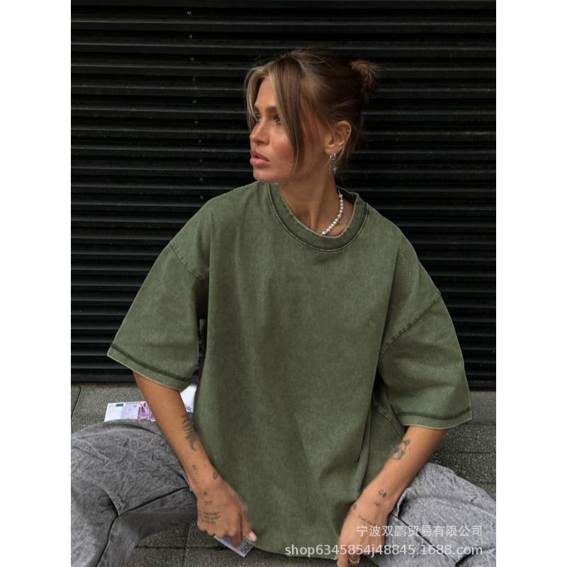 Женская летняя минималистская свободная футболка из выстиранного и состаренного хлопка, цветные свободные топы из хлопка с коротким рукавом