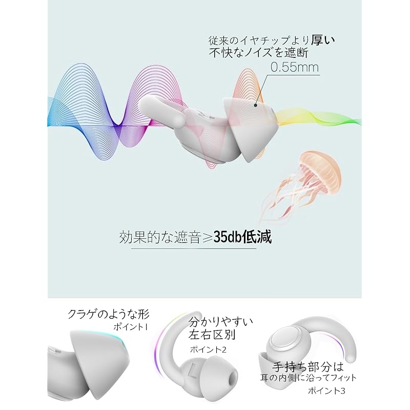 [Высокая звукоизоляция] Беруши для сна Elowen имеют форму медузы, толще обычных ушных вкладышей и обладают коэффициентом шумоподавления 35 дБ, поэтому они могут эффективно блокировать неприятные шумы в вашей жизни.(Вы можете слышать необходимые звуки, такие как звуки будильника, предупреждения о стихийных бедствиях и голоса, обращающиеся к вам.. )