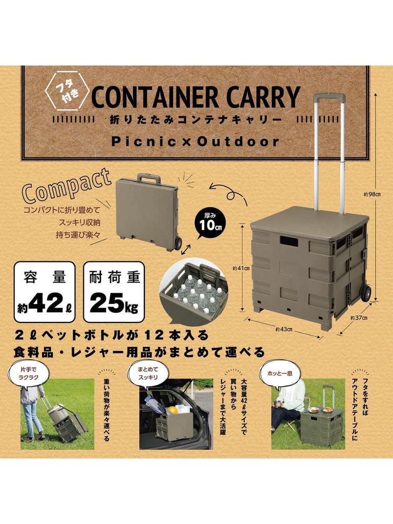 Складная тележка для контейнеров Kakusei с крышкой цвета хаки, грузоподъемность 25 кг, вместимость 42 л, для отдыха на открытом воздухе, для шопинга, Picdoor PIC-11