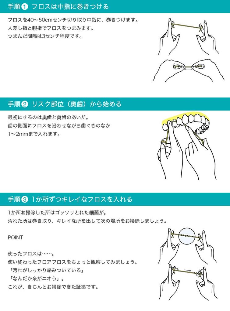 Зубная нить обработана таким образом, что волокна распрямляются под воздействием влаги, выделяемой слюной, и трения, поэтому она не вызывает боли даже при введении под линию десен.