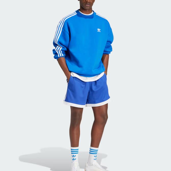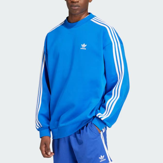Adidas Оригинальная мужская толстовка с вышитым логотипом бренда Adicolor в полоску с цветными блоками, простая американская, свитшот синего цвета IZ2479