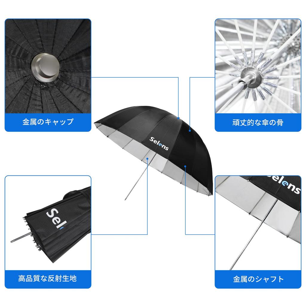 [Высокоотражающий] Глубокий параболический фотографический отражающий зонт, внутренняя часть изготовлена из высокоотражающего материала, который отражает и концентрирует свет больше, чем мягкий зонт, позволяя вам более естественно выразить контур объекта.